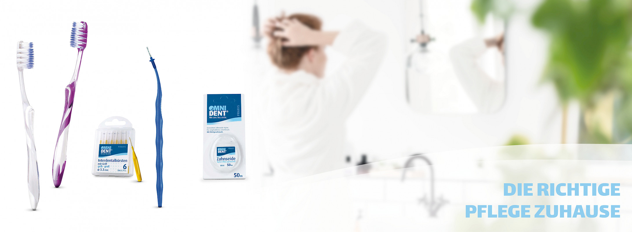 Herkömmliche Zahnbürsten erreichen häufig nur die oberflächlichen Zahnbeläge. Zwischen den Zähnen (im Interdentalraum) können aber unbemerkt Nahrungsreste verbleiben. Sie geben Bakterien die Möglichkeit, sich zu vermehren und Karies oder Zahnfleischentzündungen hervorzurufen. Mit einer Zahnzwischenraumbürste (auch Interdentalbürste genannt) erreichen Sie diese Rückstände und beseitigen sie vollständig. Dazu führen Sie die Bürstchen mit etwas Zahnpasta in die Zahnzwischenräume ein und bewegen sie vorsichtig hin und her. Abhängig von der Größe Ihrer Zahnzwischenräume bieten sich unterschiedlich große Interdentalbürsten an. Im Sortiment von Omnident gibt es zum Beispiel Bürstchen von XX-Fein bis X-Groß. Für gesunde Zahnzwischenräume sollten Sie die Interdentalbürsten mindestens jeden zweiten Tag verwenden.