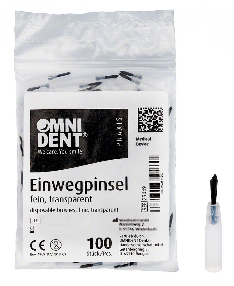 Packung 100 Pinsel transparent, Haar schwarz und kurz, fein