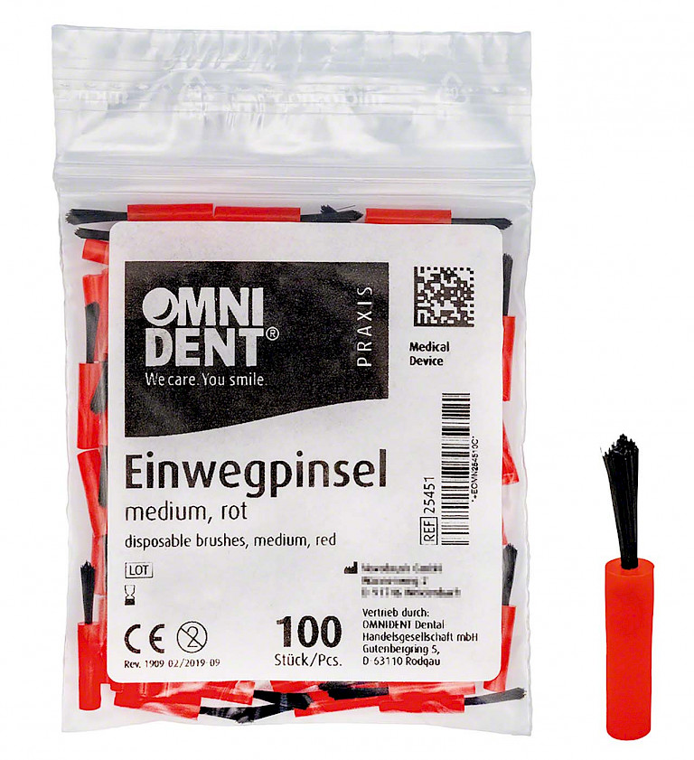 Packung 100 Pinsel rot, Haar schwarz und lang, mittel