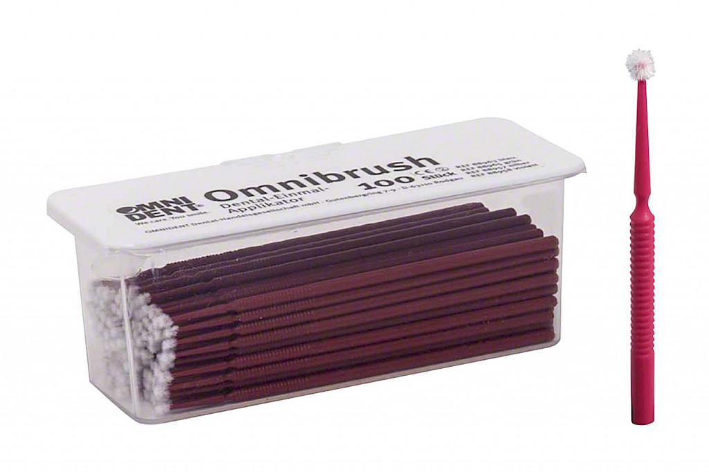 Die einzigartige Konstruktion dieses Micropinsels besteht aus kleinen, nicht fusselnden und nicht absorbierenden Fasern. Die aufzutragenden Lösungen bleiben zwischen den Fasern. Es entsteht eine nicht tropfende Kugel, die den aufzutragenden Stoff festhält, bis die Applikation erfolgt ist. Der Micropinsel ist sehr geschmeidig und gestattet das exakte Aufbringen von Lösungsmengen, die nicht größer sind als 1/8 des Tropfens. Omnibrush kann verwendet werden für das Auftragen von: Haftmitteln, Fluorid-Lösungen, hämostatischen Lösungen, Ätzmitteln, Dichtmitteln und Eugenol. Zubehör für OmniCite, OmniCite All`N´One, OMNI-ETCH.