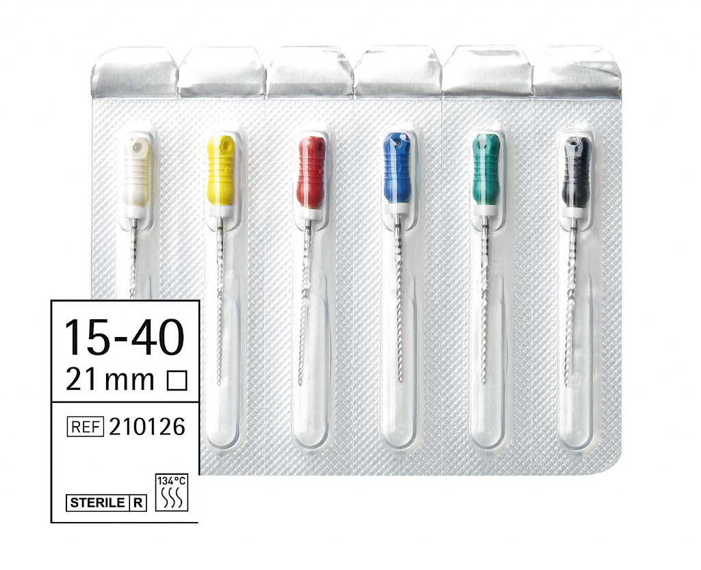 Sortiment 6 K-Feilen steril, 21 mm, ISO 015-040