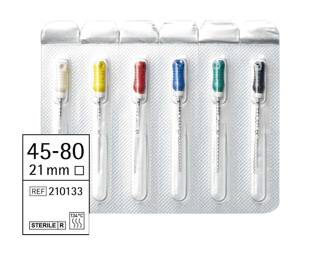 Sortiment 6 K-Feilen steril, 21 mm, ISO 045-080