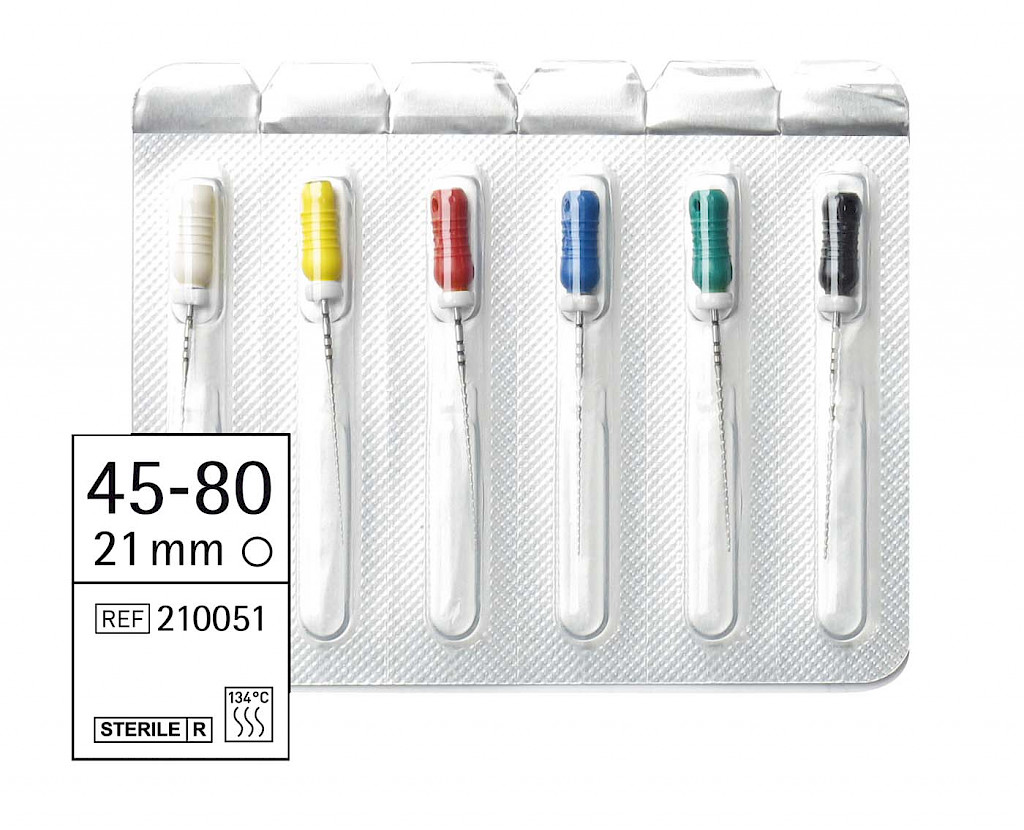Sortiment 6 Hedströmfeilen steril, 21 mm, ISO 045-080