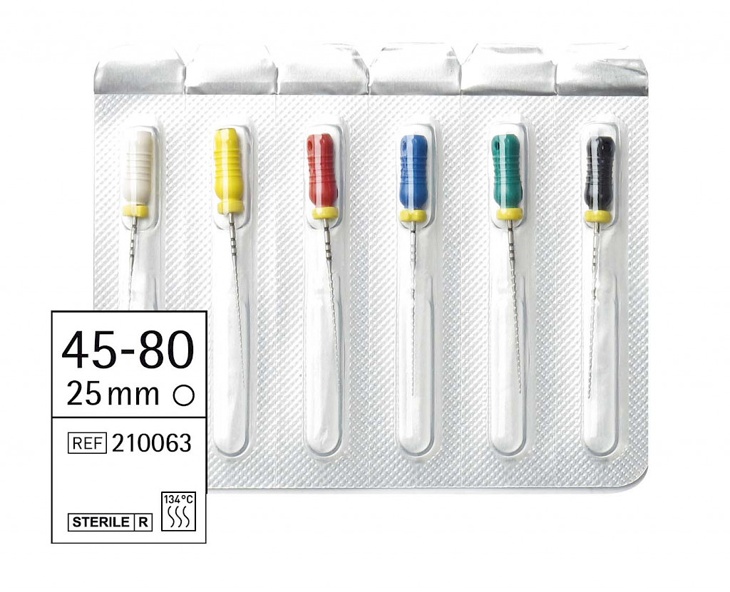 Sortiment 6 Hedströmfeilen steril, 25 mm, ISO 045-080