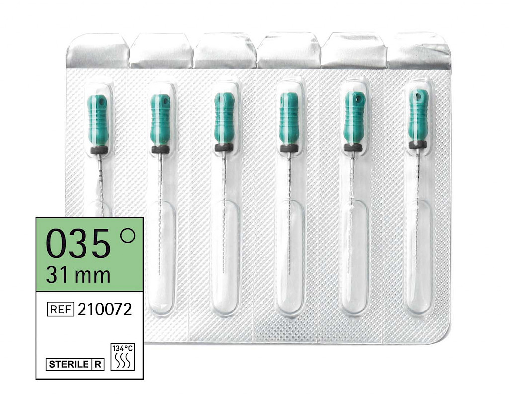 Packung 6 Hedströmfeilen steril, 31 mm, ISO 035