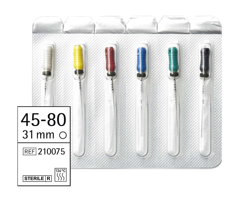 Sortiment 6 Hedströmfeilen steril, 31 mm, ISO 045-080