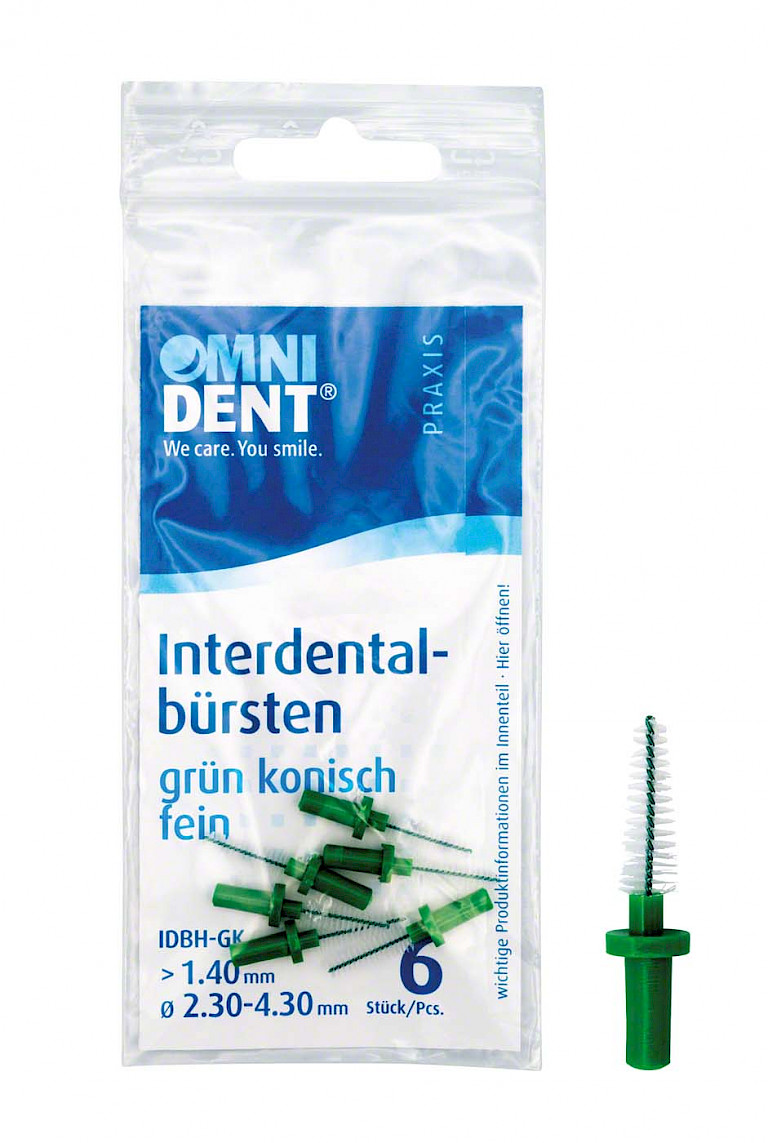 Beutel 6 Bürsten grün, konisch fein