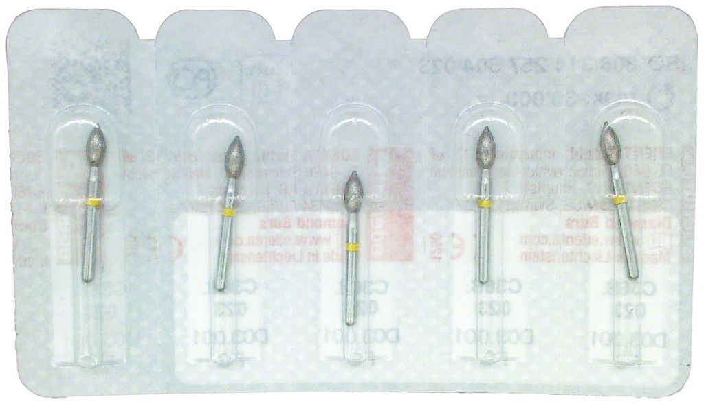 Packung 5 Diamanten gelb superfein, FG, Figur 257 Knospe, Kopflänge: 5 mm, ISO 023