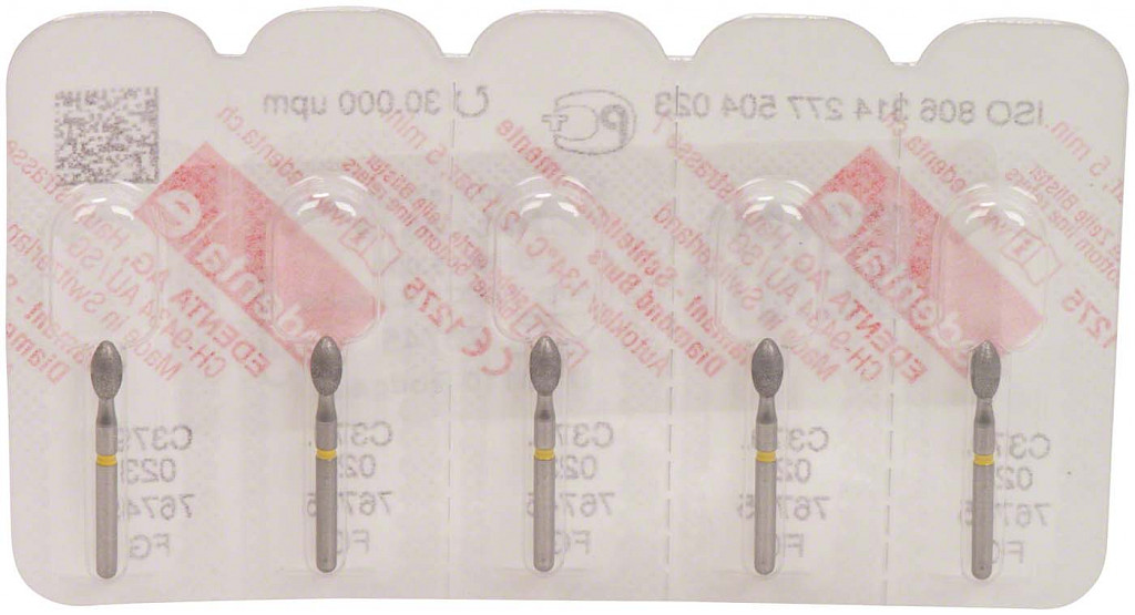 Packung 5 Diamanten gelb superfein, FG, Figur 257 Knospe, Kopflänge: 3,5 mm, ISO 016