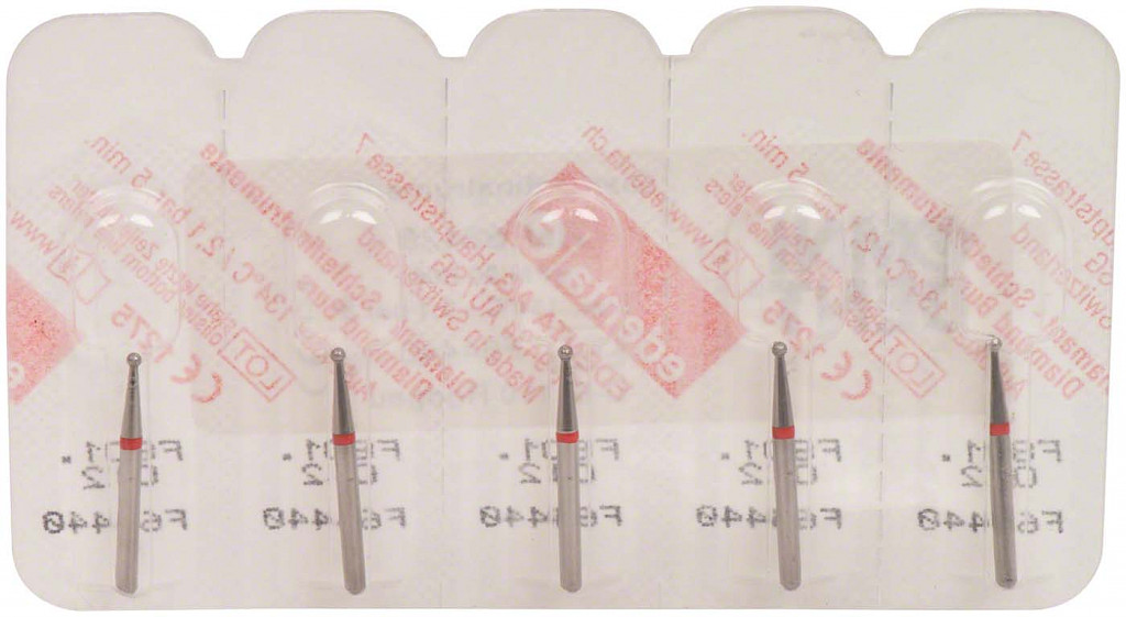 Packung 5 Diamanten rot fein, FG, Figur 001 Kugel, ISO 012