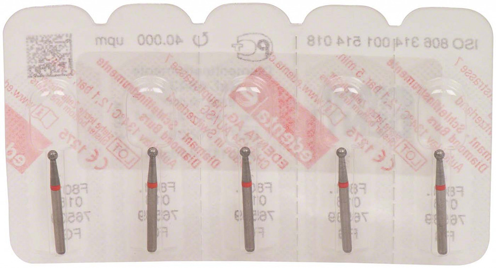 Packung 5 Diamanten rot fein, FG, Figur 001 Kugel, ISO 018