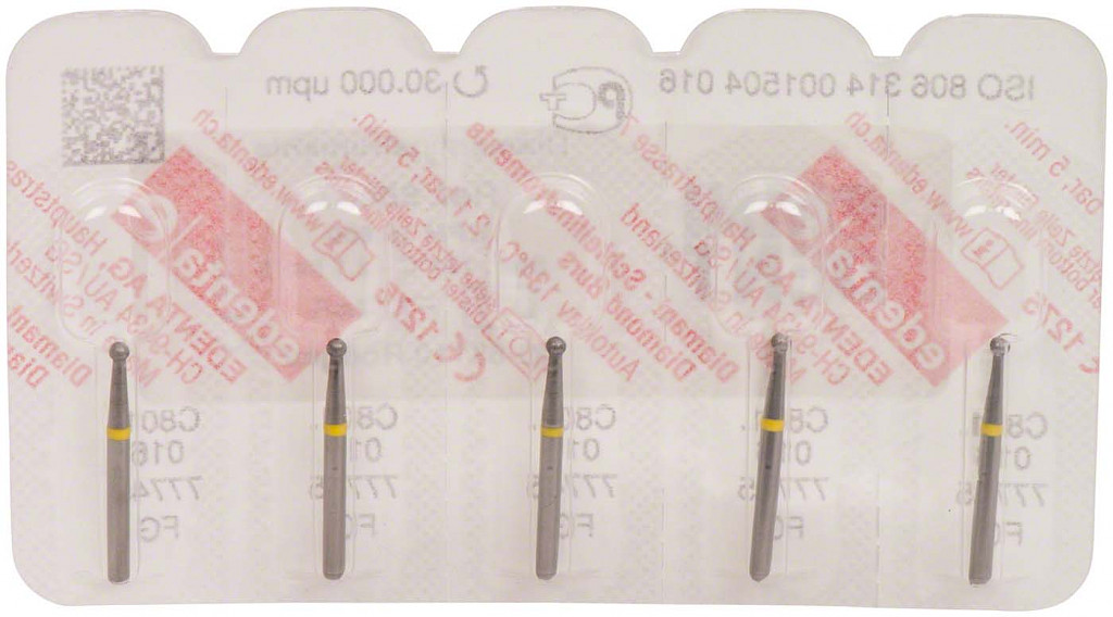 Packung 5 Diamanten gelb superfein, FG, Figur 001 Kugel, ISO 016