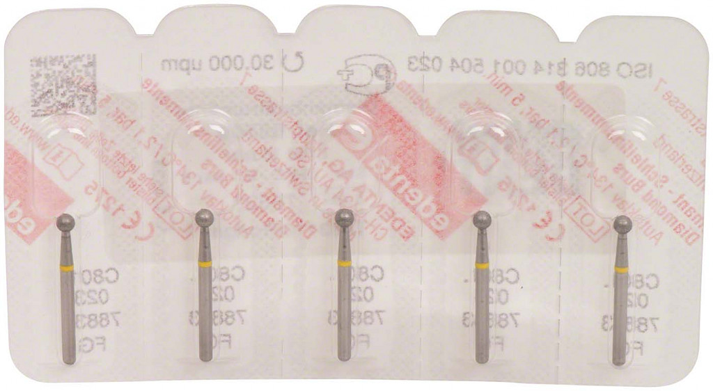 Packung 5 Diamanten gelb superfein, FG, Figur 001 Kugel, ISO 023