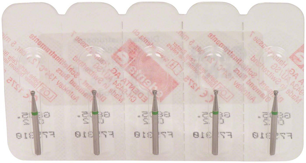 Packung 5 Diamanten grün grob, FG, Figur 012 umgekehrter Kegel, Kopflänge: 1,6 mm, ISO 018