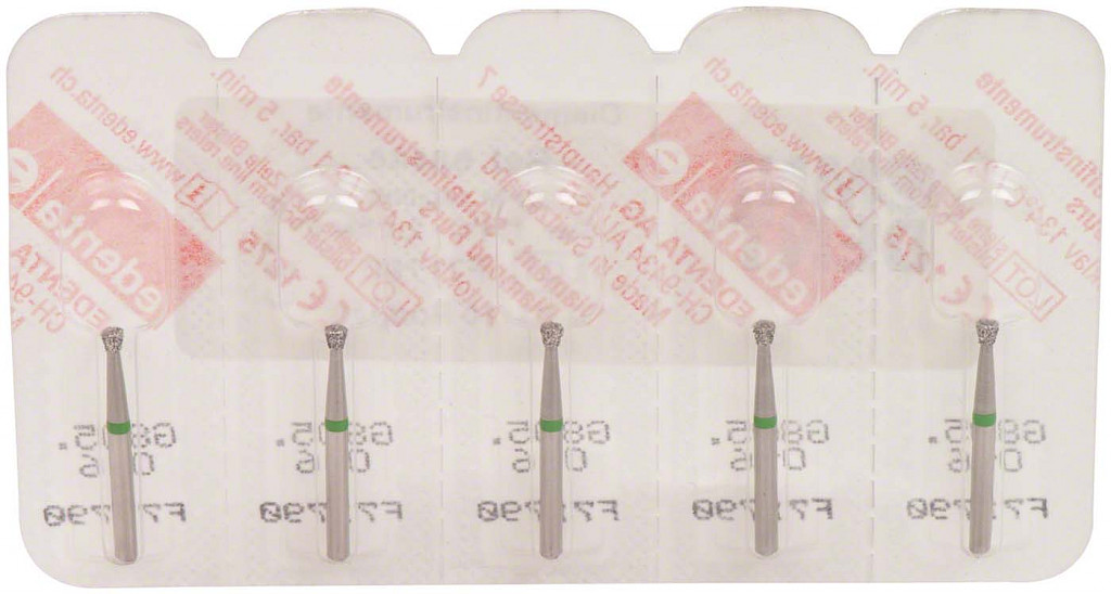 Packung 5 Diamanten grün grob, FG, Figur 012 umgekehrter Kegel, Kopflänge: 1,6 mm, ISO 016