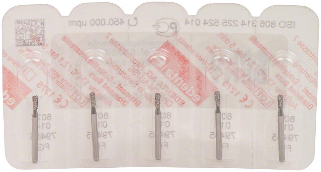 Packung 5 Diamanten Standard, FG, Figur 225 umgekehrter Kegel, Kopflänge: 3,5 mm, ISO 014