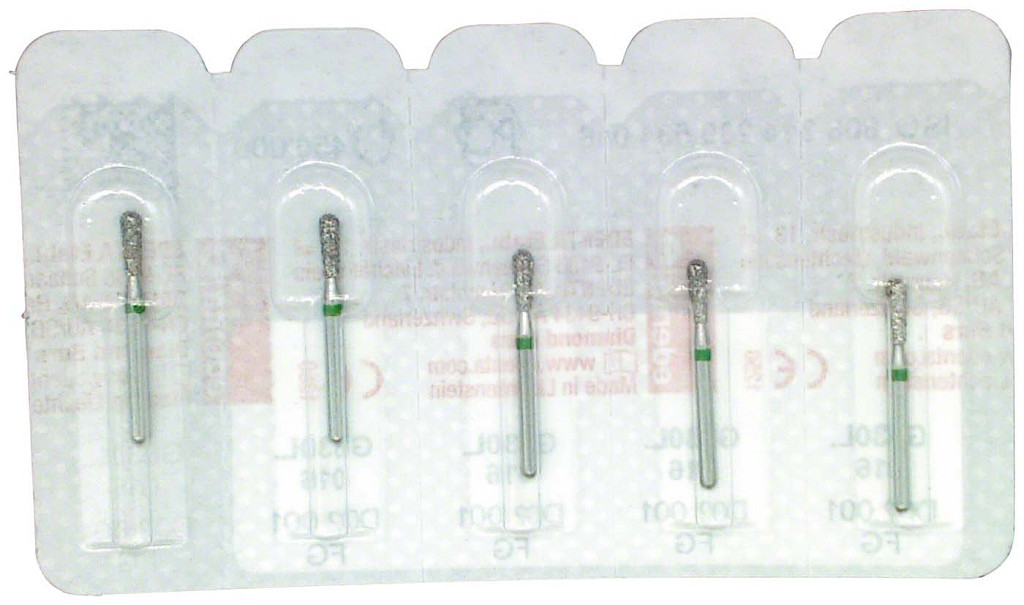 Packung 5 Diamanten grün grob, FG, Figur 239 Birne lang, Kopflänge: 5 mm, ISO 016