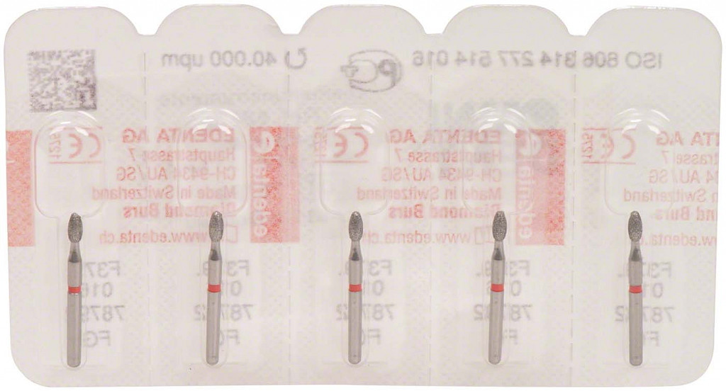 Packung 5 Diamanten rot fein, FG, Figur 277 Eiform, Kopflänge: 3,5 mm, ISO 016
