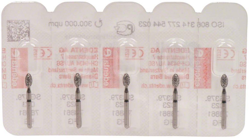 Packung 5 Diamanten schwarz supergrob, FG, Figur 277 Eiform, Kopflänge: 4,5 mm, ISO 023