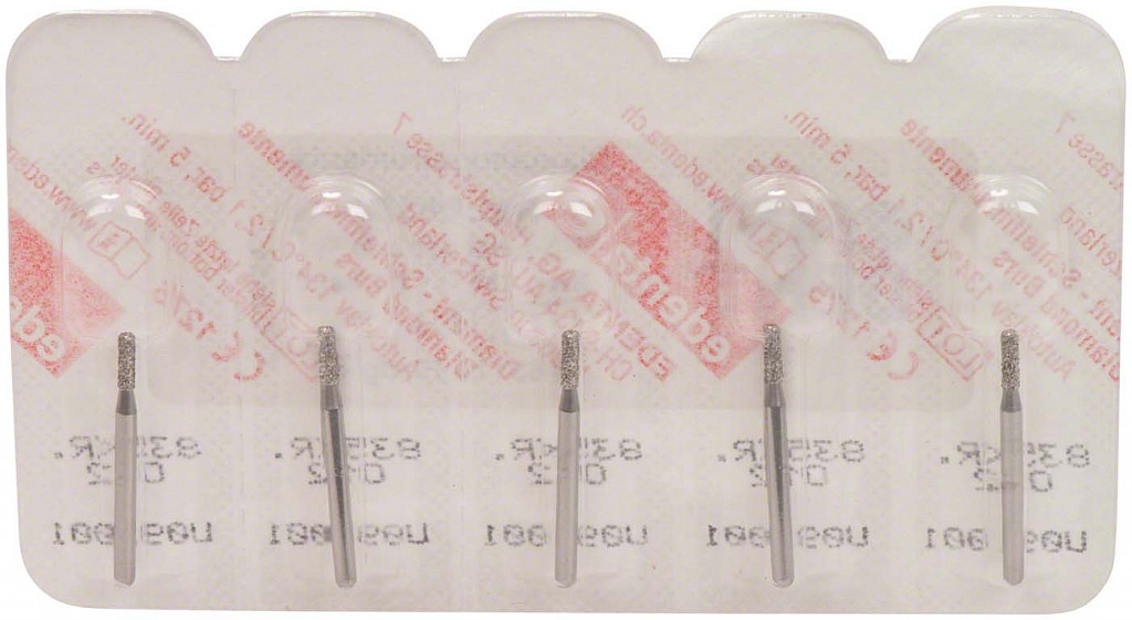 Packung 5 Diamanten Standard, FG, Figur 156 Zylinder Kante rund, Kopflänge: 4 mm, ISO 012