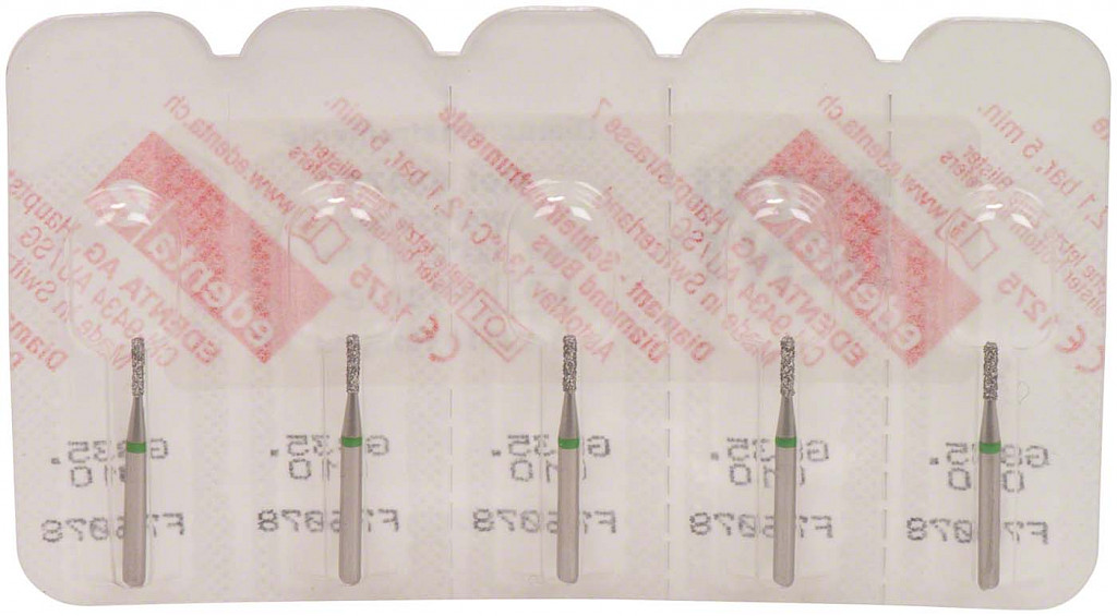 Packung 5 Diamanten grün grob, FG, Figur 108 Zylinder flach, Kopflänge: 4 mm, ISO 010