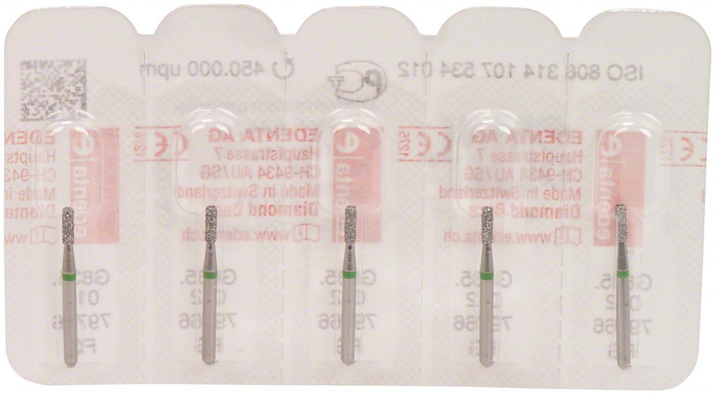 Packung 5 Diamanten grün grob, FG, Figur 108 Zylinder flach, Kopflänge: 4 mm, ISO 012