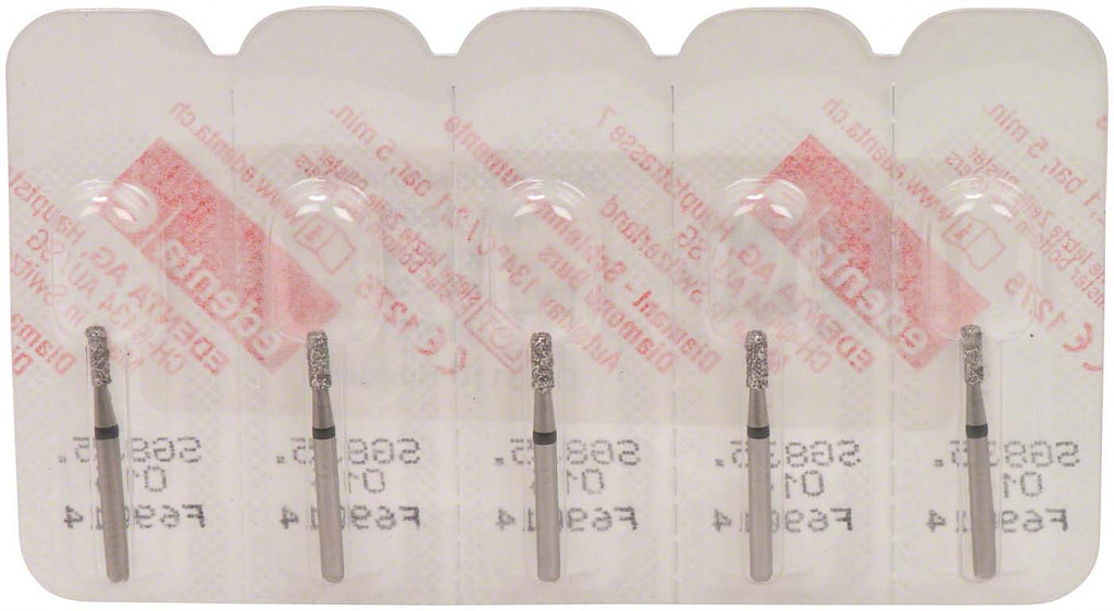 Packung 5 Diamanten schwarz supergrob, FG, Figur 108 Zylinder flach, Kopflänge: 4 mm, ISO 014