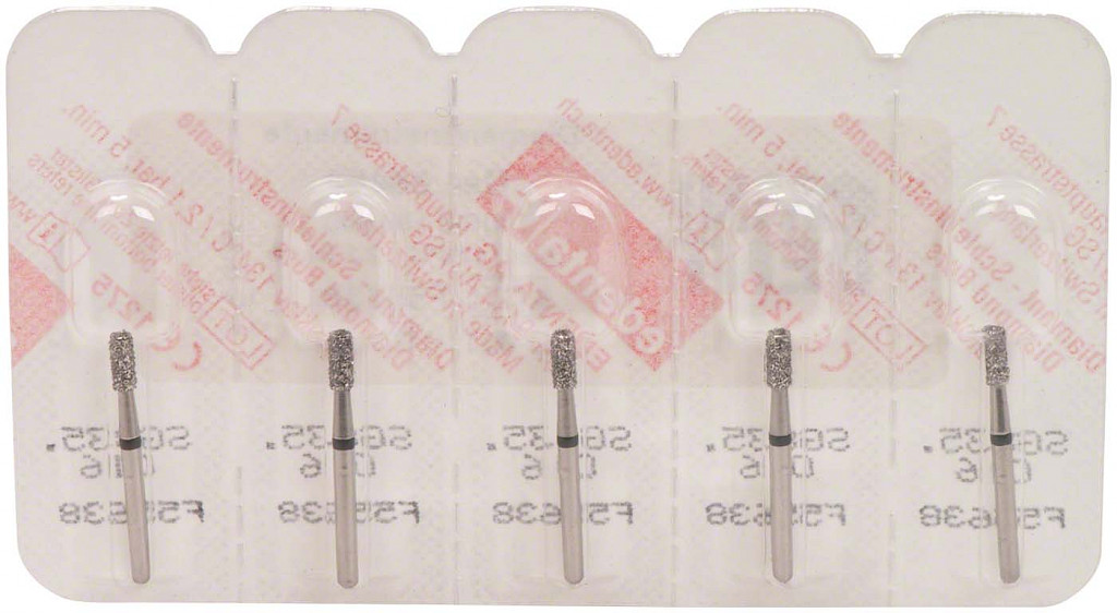 Packung 5 Diamanten schwarz supergrob, FG, Figur 108 Zylinder flach, Kopflänge: 4 mm, ISO 01