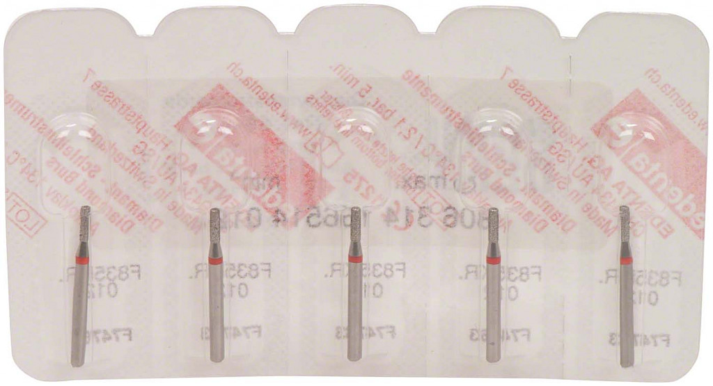 Packung 5 Diamanten rot fein, FG, Figur 156 Zylinder Kante rund, Kopflänge: 4 mm, ISO 012
