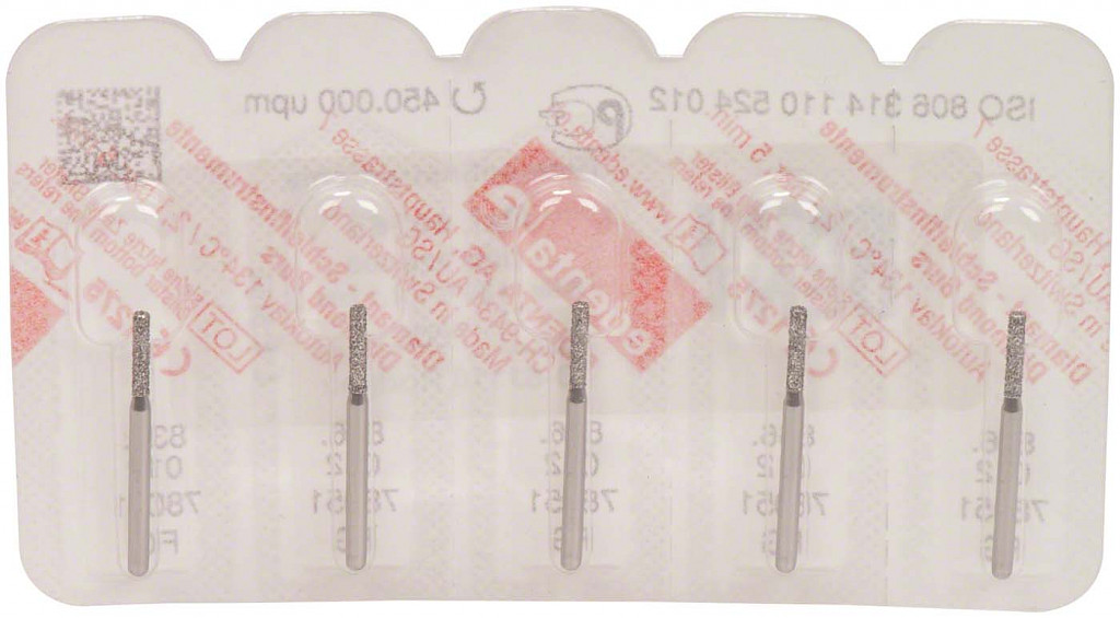 Packung 5 Diamanten Standard, FG, Figur 110 Zylinder flach, Kopflänge: 6 mm, ISO 012