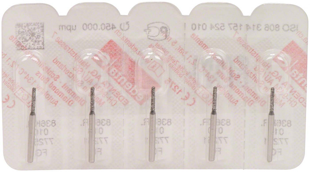 Packung 5 Diamanten Standard, FG, Figur 157 Zylinder Kante rund, Kopflänge: 6 mm, ISO 010