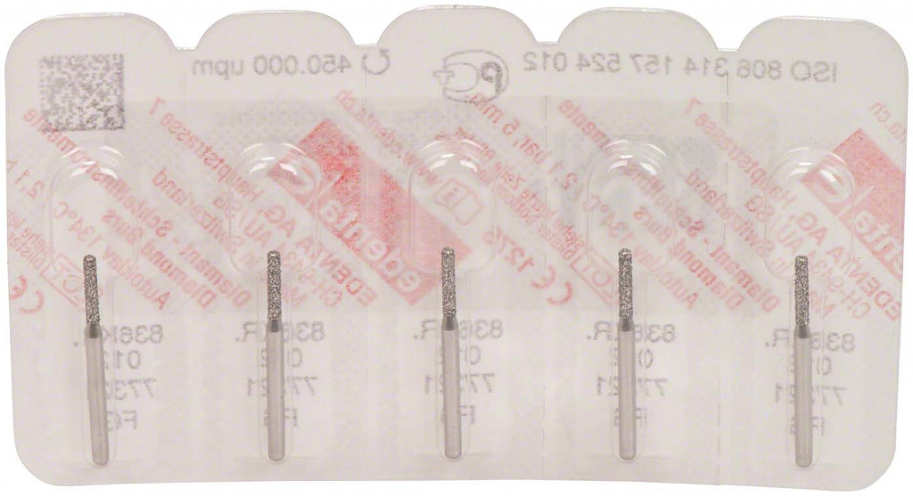 Packung 5 Diamanten Standard, FG, Figur 157 Zylinder Kante rund, Kopflänge: 6 mm, ISO 012
