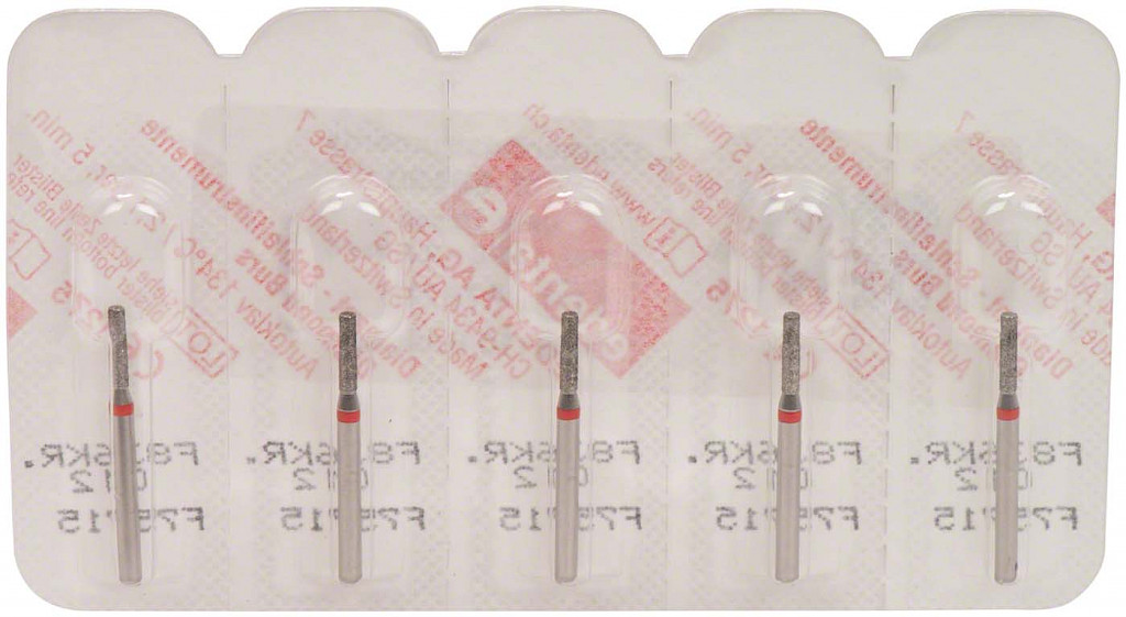 Packung 5 Diamanten rot fein, FG, Figur 157 Zylinder Kante rund, Kopflänge: 6 mm, ISO 012