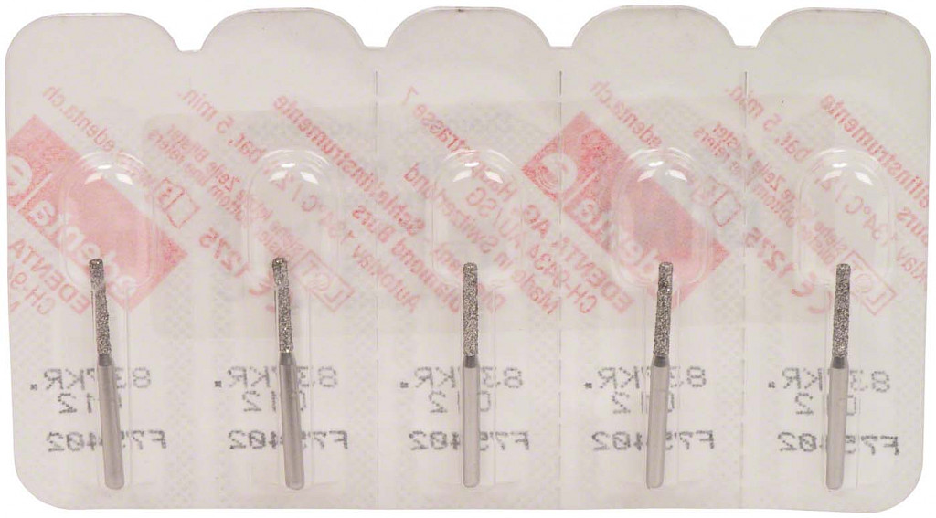 Packung 5 Diamanten Standard, FG, Figur 158 Zylinder Kante rund, Kopflänge: 8 mm, ISO 012