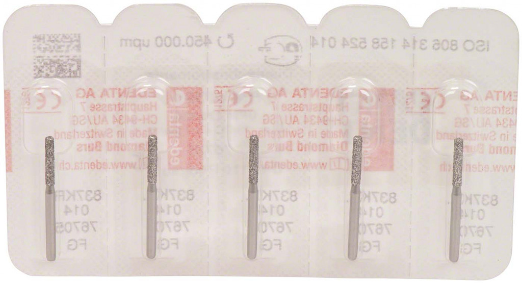 Packung 5 Diamanten Standard, FG, Figur 158 Zylinder Kante rund, Kopflänge: 8 mm, ISO 014