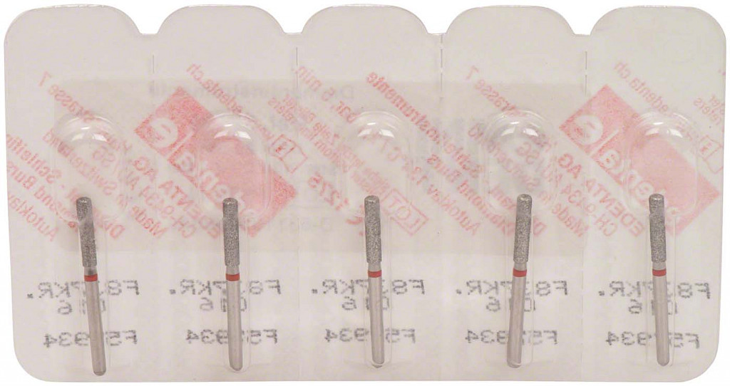 Packung 5 Diamanten rot fein, FG, Figur 158 Zylinder Kante rund, Kopflänge: 8 mm, ISO 016