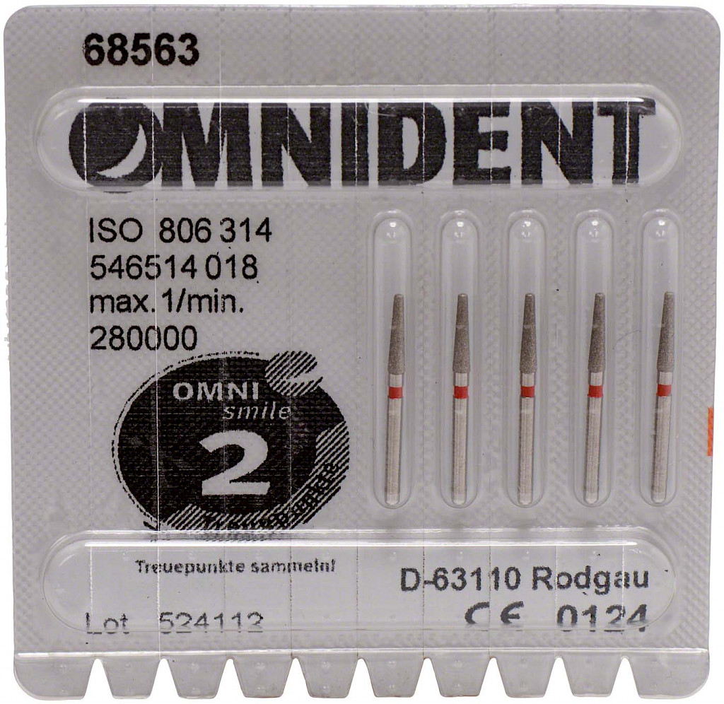 Packung 5 Diamanten rot fein, FG, Figur 546 Konus Kante rund, ISO 018