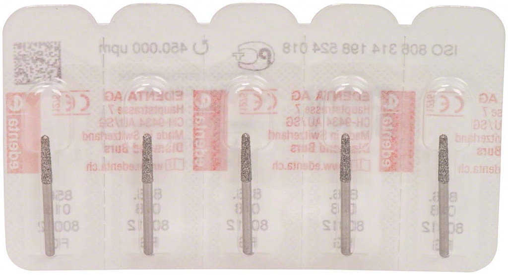 Packung 5 Diamanten Standard, FG, Figur 198 Konus rund, Kopflänge: 8 mm, ISO 018