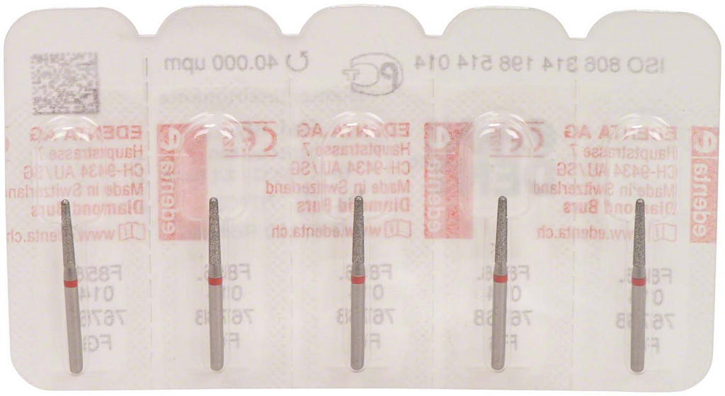 Packung 5 Diamanten rot fein, FG, Figur 198 Konus rund, Kopflänge: 8 mm, ISO 014