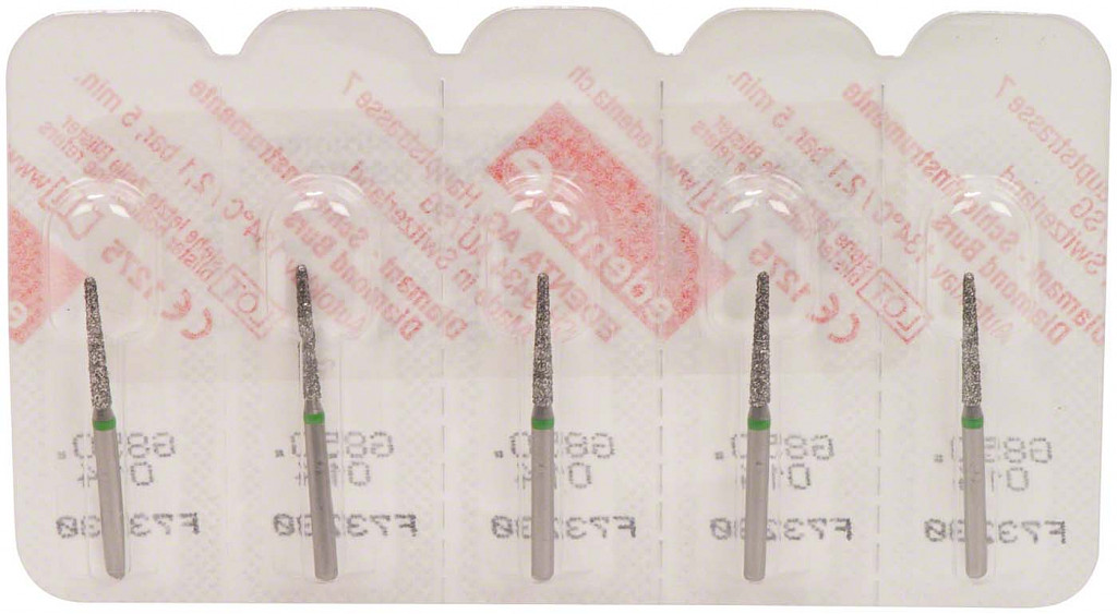 Packung 5 Diamanten grün grob, FG, Figur 199 Konus rund, Kopflänge: 10 mm, ISO 014