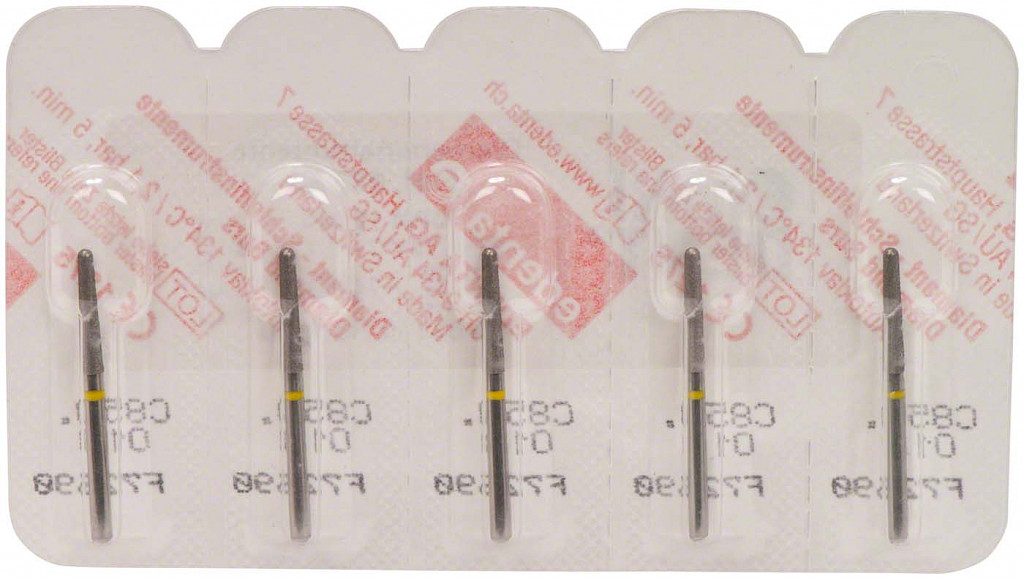 Packung 5 Diamanten gelb superfein, FG, Figur 199 Konus rund, Kopflänge: 10 mm, ISO 018