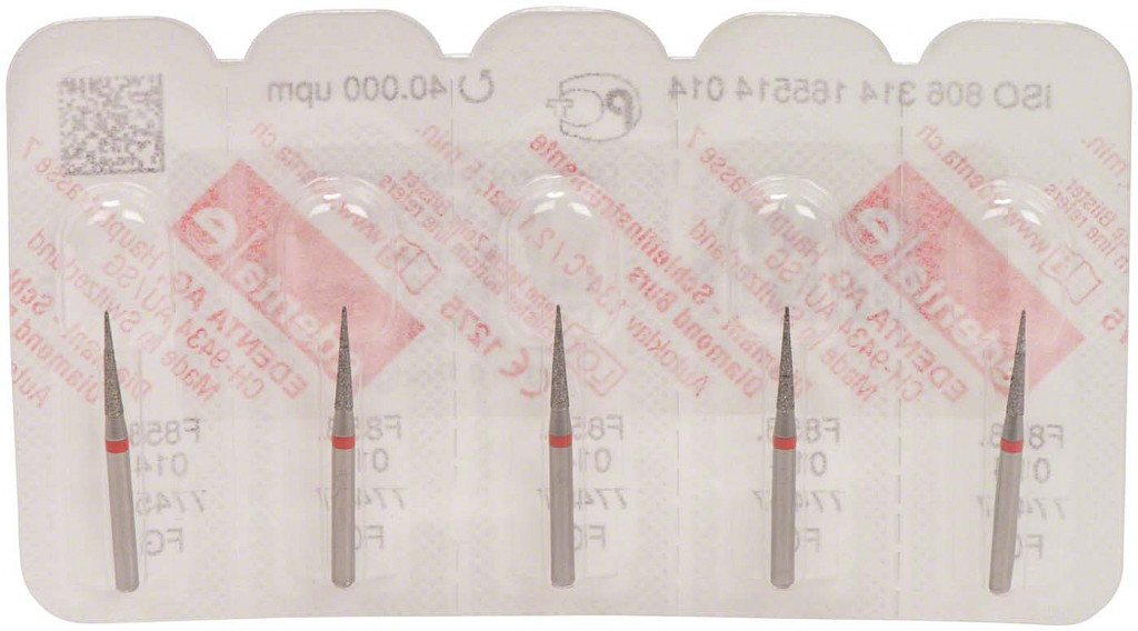 Packung 5 Diamanten rot fein, FG, Figur 165 Konus Spitze, Kopflänge: 8 mm, ISO 014
