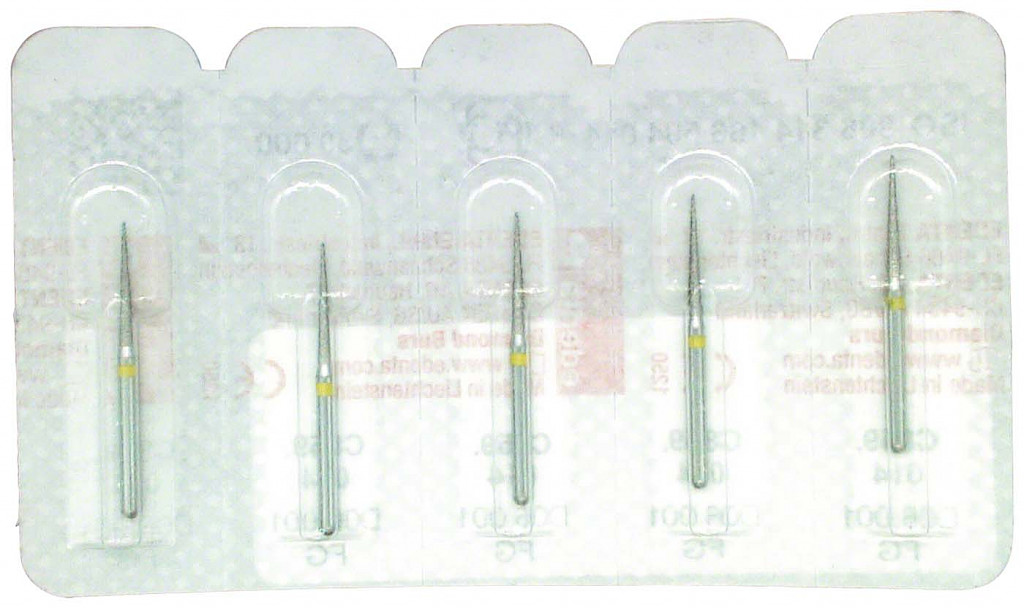 Packung 5 Diamanten gelb superfein, FG, Figur 166 Konus Spitze, Kopflänge: 10 mm, ISO 014