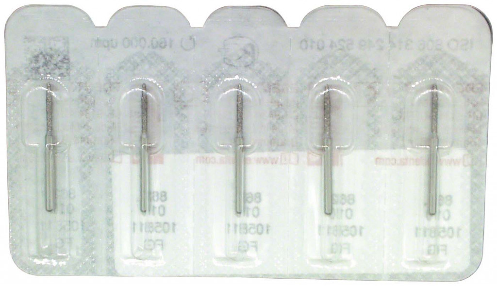 Packung 5 Diamanten Standard, FG, Figur 249 Flamme, Kopflänge: 8 mm, ISO 010
