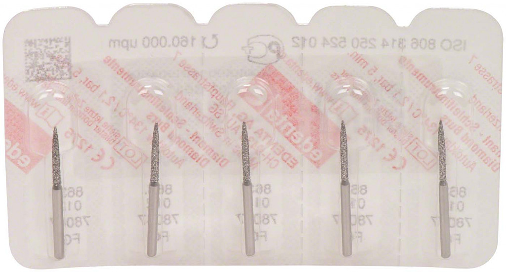 Packung 5 Diamanten Standard, FG, Figur 250 Flamme, Kopflänge: 10 mm, ISO 012