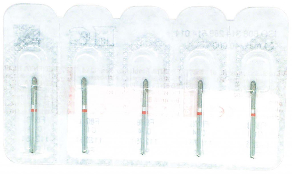Packung 5 Diamanten rot fein, FG, Figur 289 Torpedo zylindrisch, Kopflänge: 8 mm, ISO 014