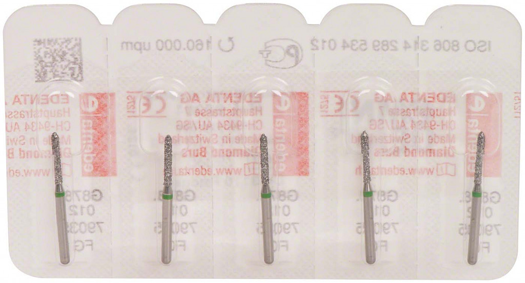 Packung 5 Diamanten grün grob, FG, Figur 289 Torpedo zylindrisch, Kopflänge: 8 mm, ISO 012