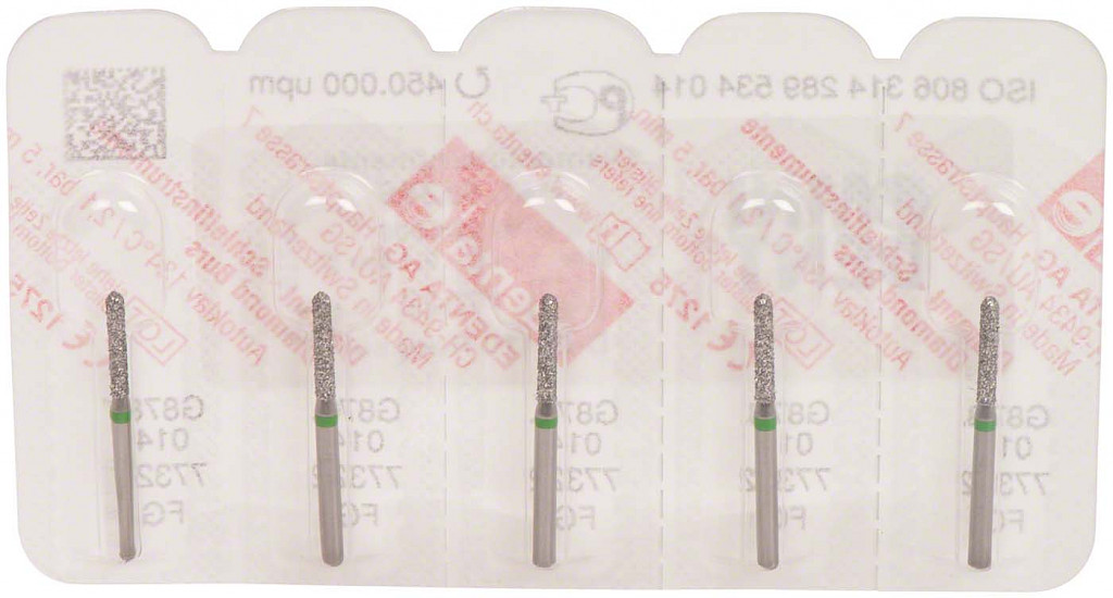 Packung 5 Diamanten grün grob, FG, Figur 289 Torpedo zylindrisch, Kopflänge: 8 mm, ISO 014