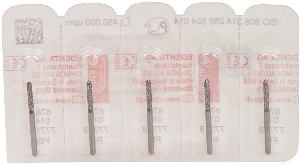 Packung 5 Diamanten Standard, FG, Figur 289 Torpedo zylindrisch, Kopflänge: 8 mm, ISO 014