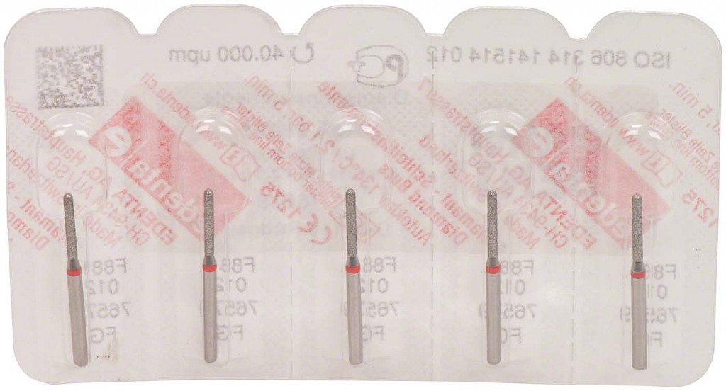 Packung 5 Diamanten rot fein, FG, Figur 141 Zylinder rund, Kopflänge: 8 mm, ISO 012